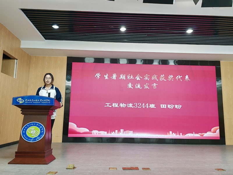 与此同时,在表彰大会现场,雷赐涛老师作为优秀指导教师代表进行了交流发言;工程物流3244班田盼盼同学作为优秀获奖代表进行了交流发言。