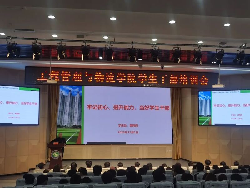 为进一步加强学生干部队伍建设,提升学生干部的责任意识与综合能力,12月1日下午,工程管理与物流学院在高新校区博爱厅举行学生干部培训会。学生处副处长黄阿岗老师担任主讲嘉宾。培训会由学工办主任李红春主持。全体无课学生干部到场参加培训。