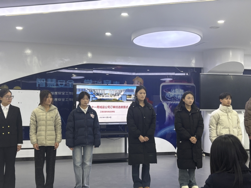 为更深入探索人才培养新模式,进一步提升学生就业质量,今晚,管理学院在实训楼举行中铁十一局城运公司订单班选拔面试。