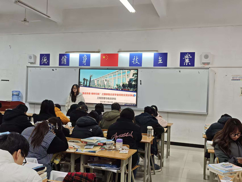 为彰显国家励志奖学金获得者的奋斗风采,弘扬刻苦争先的学子精神,引导新生树立积极的学习态度与良好的学习习惯,营造勤奋向上的班级氛围,并深入介绍“奖、助、贷、勤、减、免、补”资助体系中的“奖”这一环节,管理学院于2025年12月22日晚组织2024-2025学年国家励志奖学金获得者走进2025级新生班级,开展政策宣讲活动。