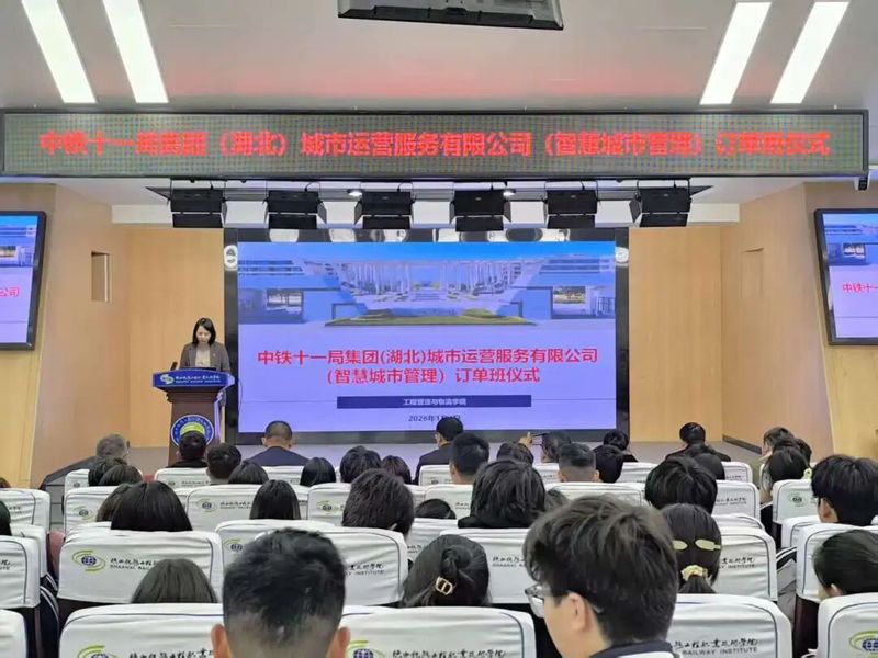 1月4日下午,陕西铁路工程职业技术学院与中铁十一局集团城市运营服务有限公司(智慧城市管理订单班)开班仪式在高新校区举行。学校校长韩小卫、副校长张学钢、教务处处长刘超群、校企合作处副处长苏昭,工程管理与物流学院院长叶超、党总支书记张玉鹏,中铁十一局城运公司党委书记诸葛祥菊、党委副书记兼工会主席及纪委书记陈安伍等一行4人出席仪式。仪式由工程管理与物流学院副院长杨小玉主持。