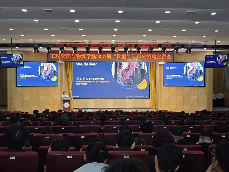 为深化产教融合、聚力校企协同育人,以订单式人才培养助力2027届毕业生就业工作,3月26日下午,工程管理与物流学院在高新校区博爱厅举办西安聚盟科技发展有限公司2027届订单班招聘宣讲会,学院2027届全体毕业生到场参加,辅导员雷赐涛主持会议。